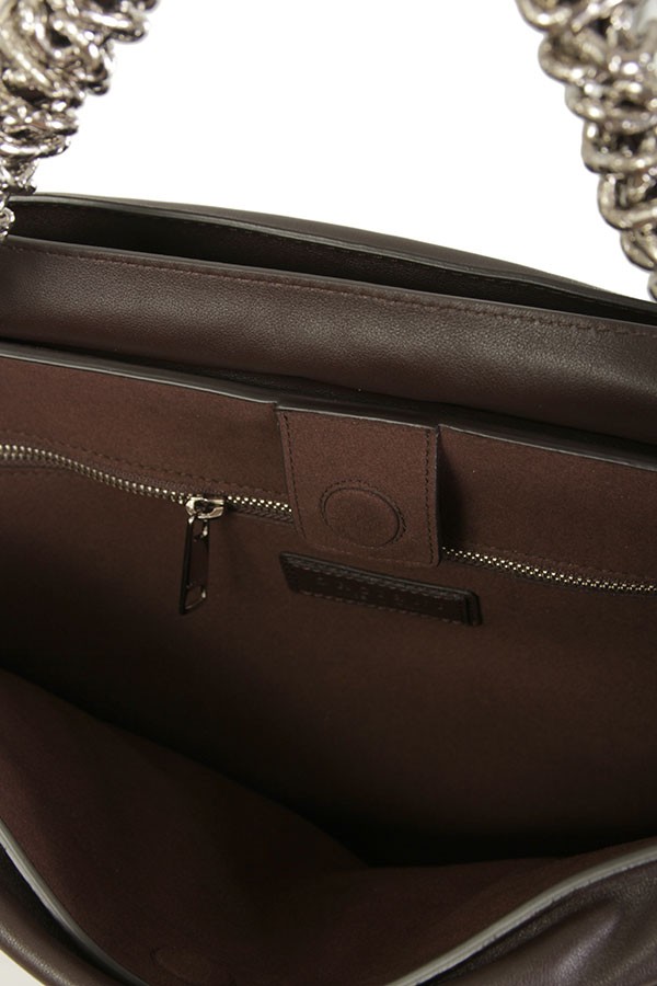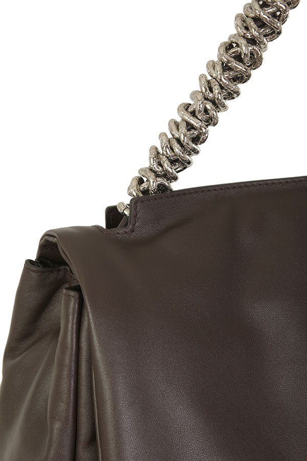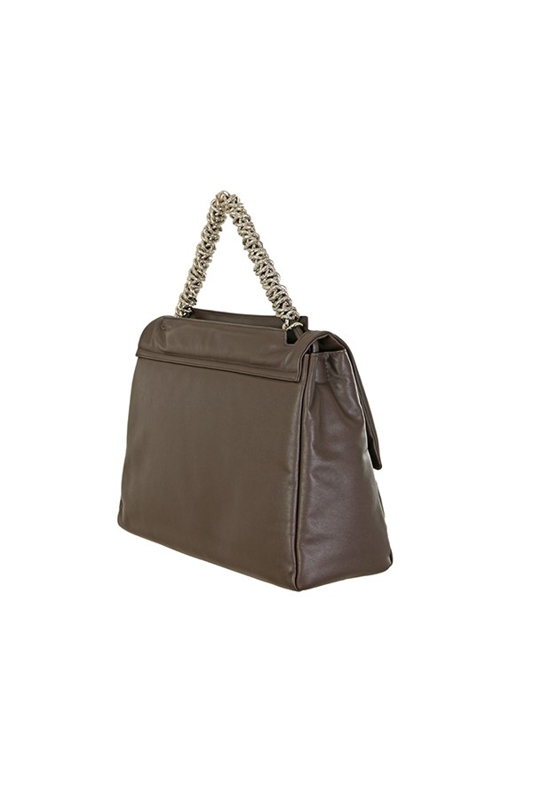 Sveva, realizzata nappa. Da portare a spalla o a mano. Con tre tasche interne di cui una con zip. Chiusura con patta e magnete. Manico in metallo intrecciato.