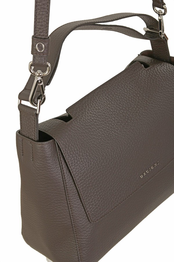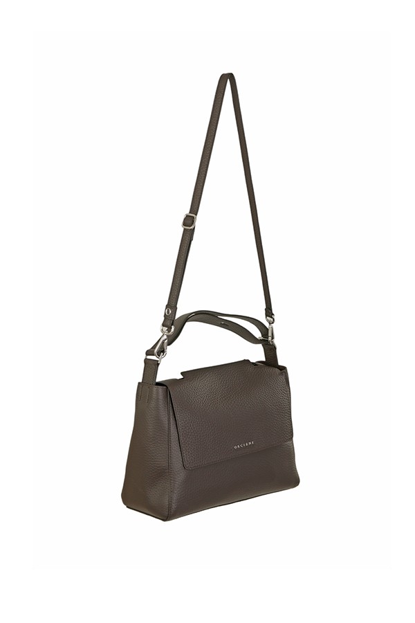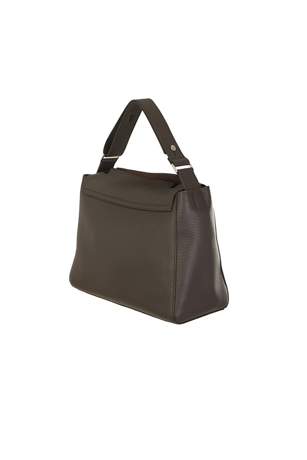 Sveva Soft Media, iconica. Da portare a spalla o a mano. in morbida pelle martellata, apertura a scomparsa con magnete. Tasche interne, di cui una con zip.