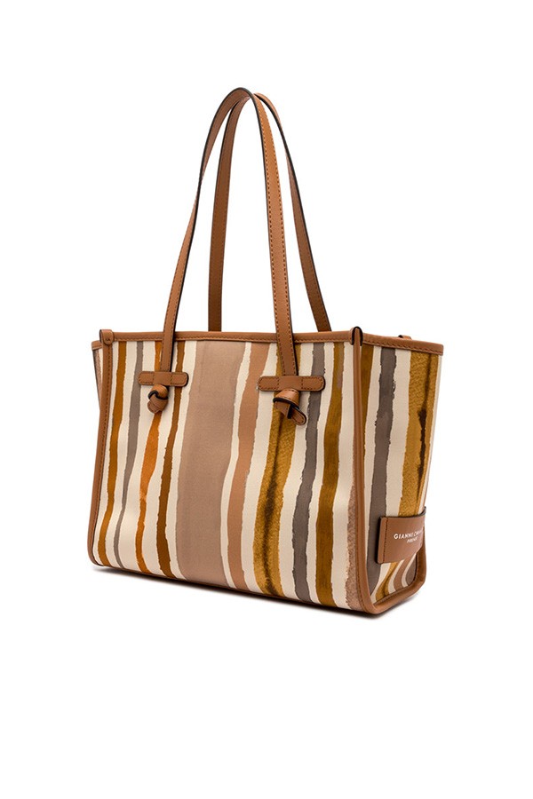 Realizzata in cotone stampato, con manici e profili in pelle.