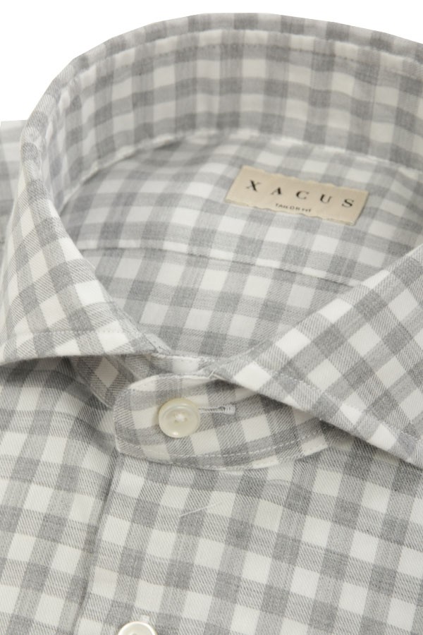 Camicia Xacus Art.31332 721 001 tailor realizzata in cotone fantasia quadri colore bianco e grigio, collo con bottoni, slim fit. Composizione 100%co.