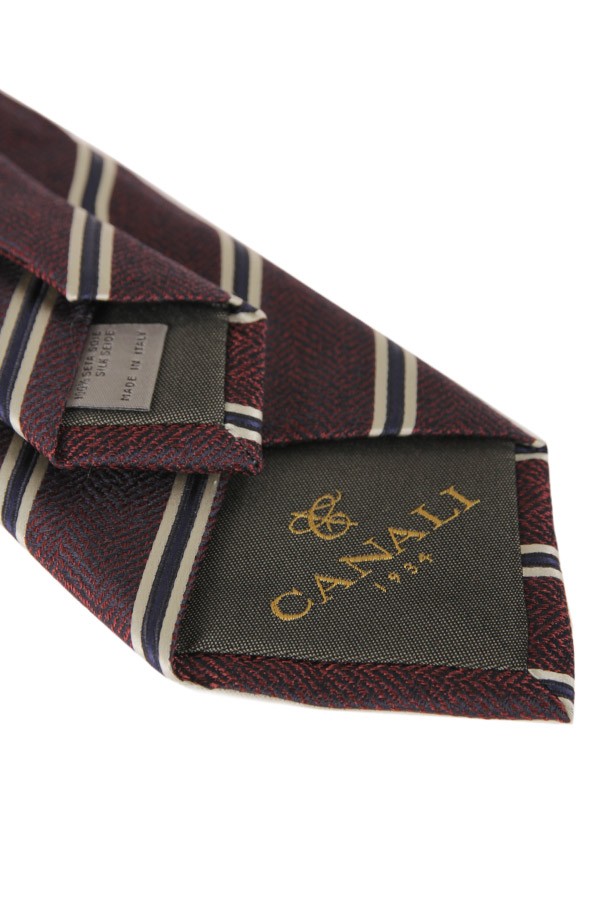Cravatta Canali Art.HJ03309 4 realizzata in seta fantasia colore bordeaux, raffinata e di classe per completare un outfit ricercato. Composizione 100%seta.
