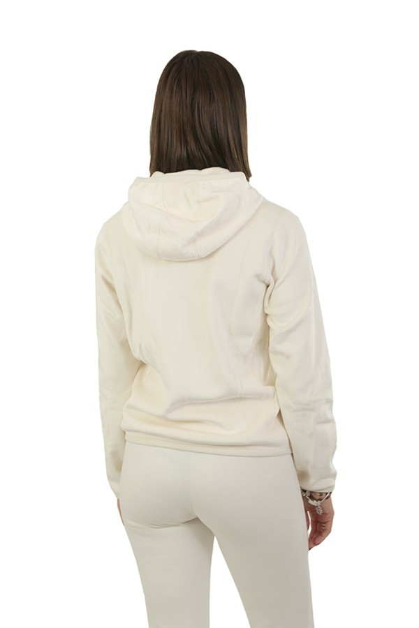 Double. Polar a due strati, uno effetto velour, l'altro in pile liscio. Chiusura con zip, polsi con elastico. Due tasche con zip,due con bottoni a pressione.