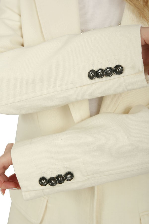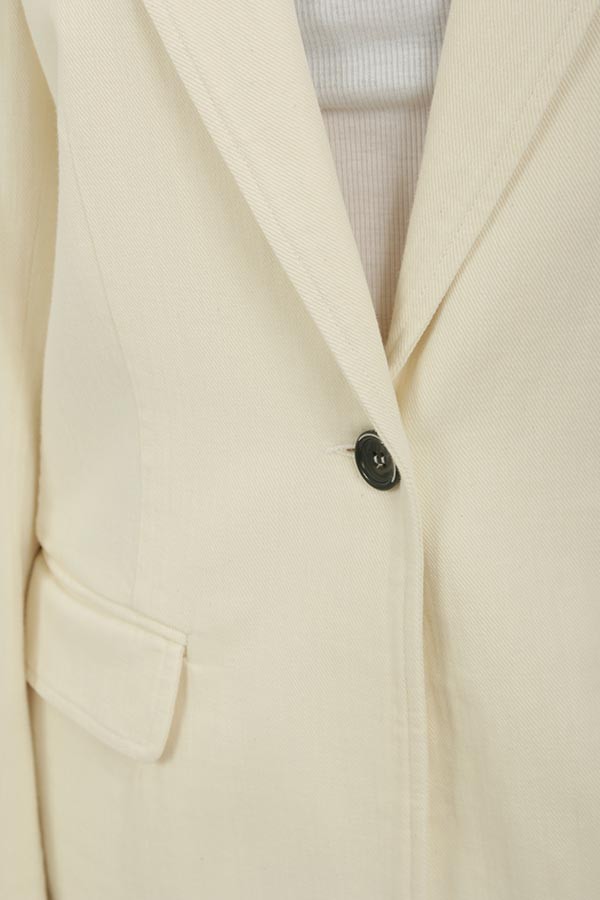 Modello Dido, monopetto, in cotone. Sfoderata, con tasche con patta.