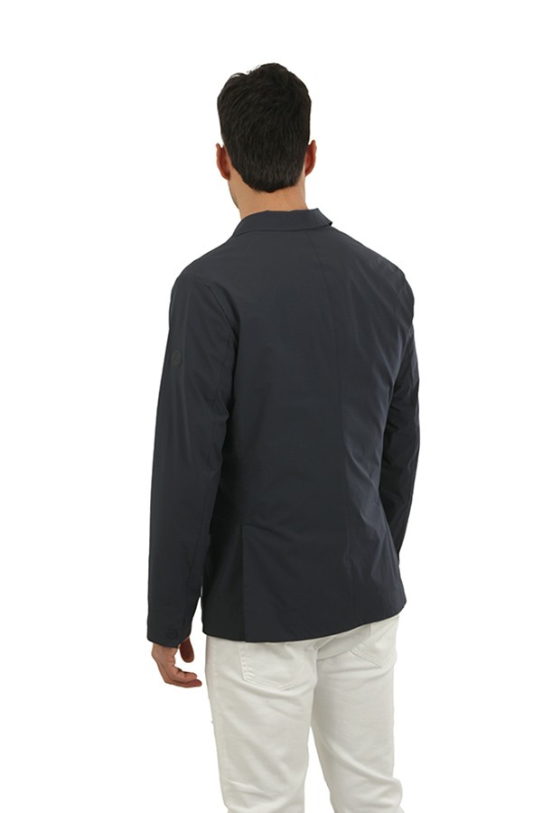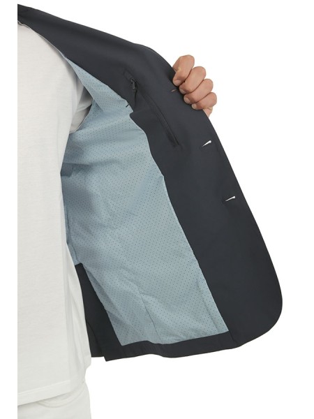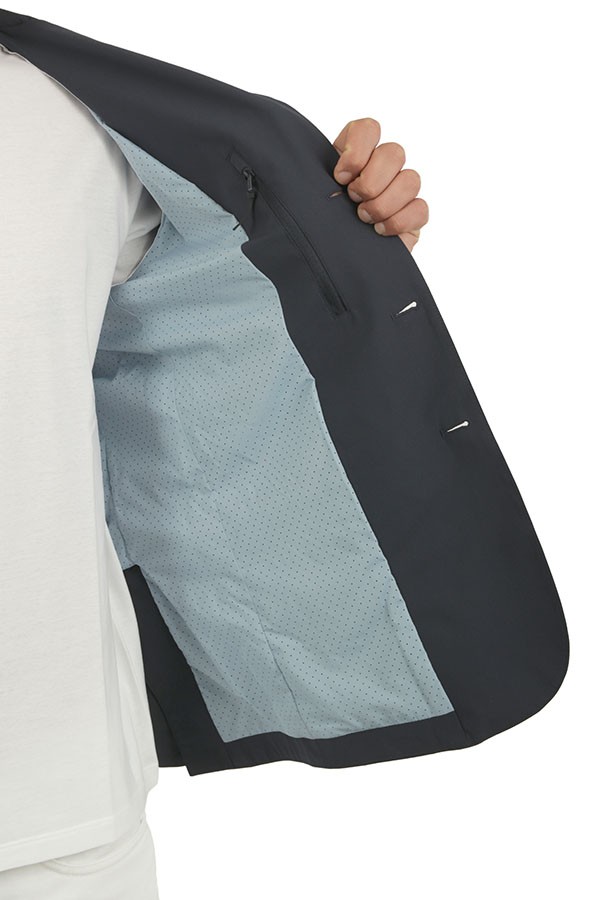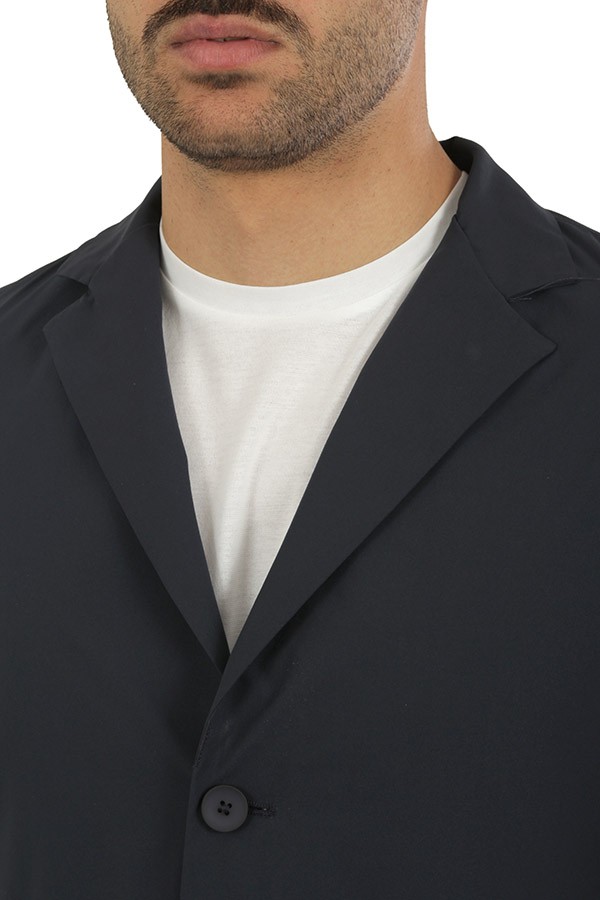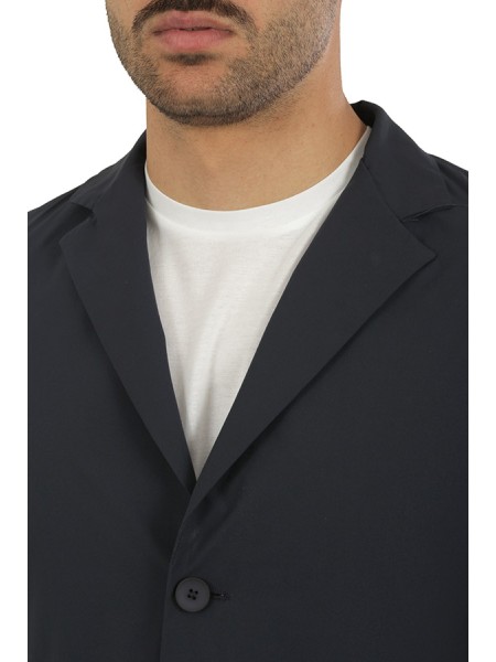 Monopetto, in tessuto b-stretch, antipioggia, e anti piega. Spacchi laterali, posteriori.