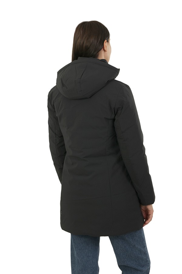 Rachel, medio. Con collo alto e cappuccio staccabile. Tasche con zip, chiusura con zip.