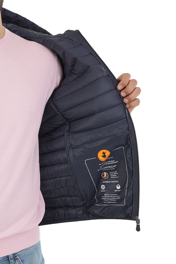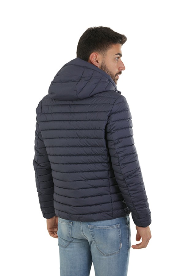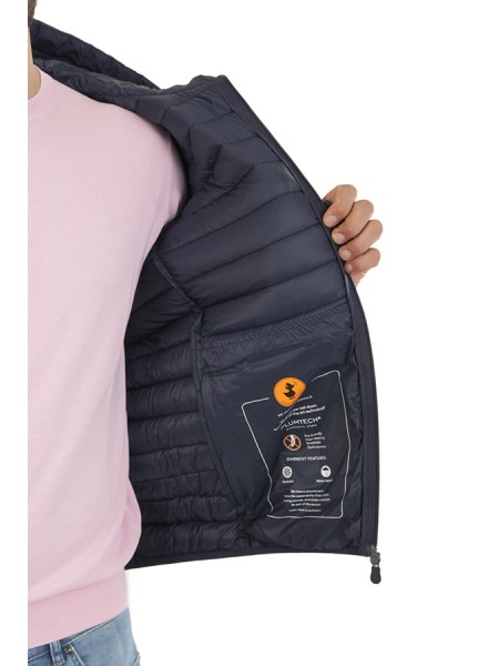 Giubbotto Save The Duck Art.D3971M MITO16 90000 animal-free trapuntato colore blu, il modello Luke si presenta con un pratico cappuccio regolabile e tasche zippate sui lati. Rifinito in lycra ai polsi e sul fondo per maggiore comfort, ha zip a doppio cursore, tiretti e logo tono su tono. Composizione 100%pl.
