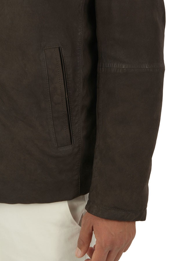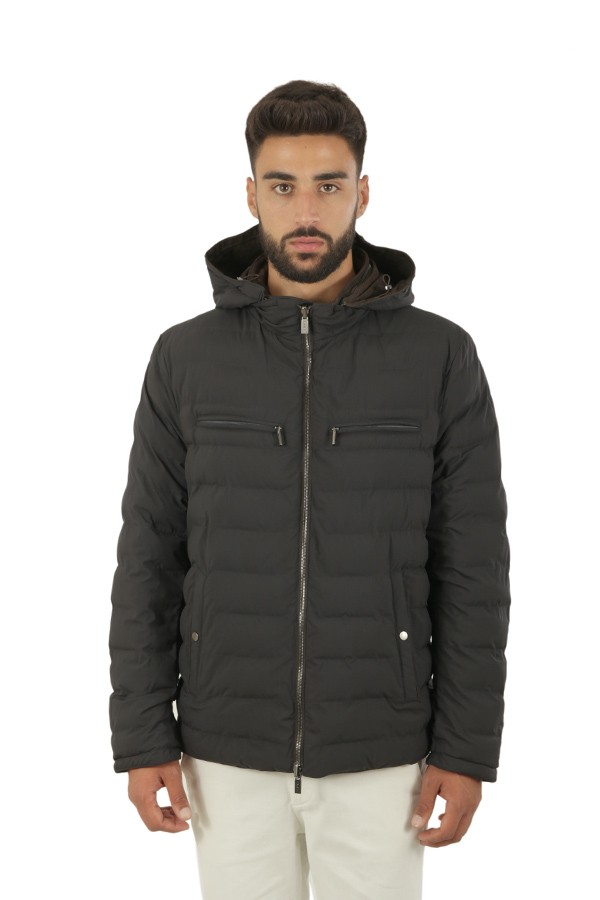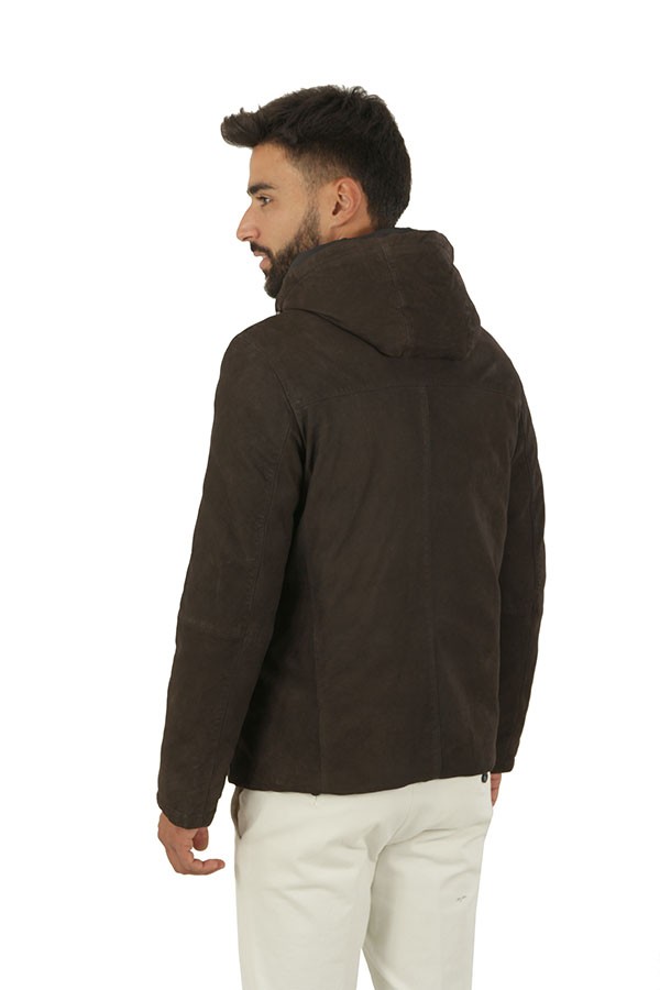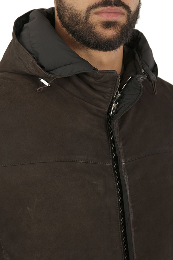 Giubbino in pelle Gimo's Art. Hoodie 3W20101098R B39.reversibile,realizzato in nappa ultra morbida. Cappuccio staccabile. Interno in tessuto tecnico idrorepellente. Chiusura con zip a doppio cursore .Bordini in tessuto elasticizzato.cupertinoshop.com