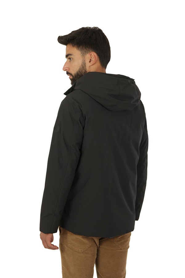 Giubbino Kore, Black, in tessuto tecnico, reversibile, imbottitura in materiale tecnico isolante con cappuccio. Zip doppio cursore e gommino personalizzato. Logo gommato sulla manica sinistra. Tasche a pattina con sistema di chiusura a calamita.