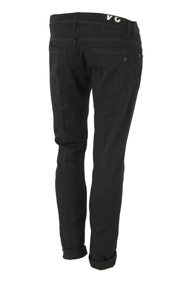 Jeans Art.UP232 DSE249 A27 999 george realizzato in cotone denim colore nero modello 5 tasche, vestibilità slim, chiusura con bottoni. Il modello indossa taglia 33.