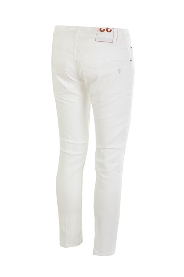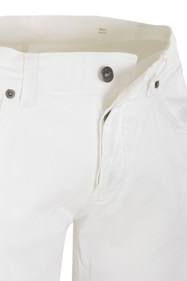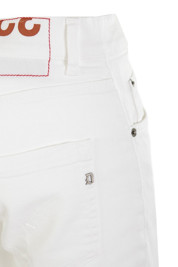 Jeans Dondup modello Mius bianco, gamba corta, leggermente largo sulla coscia, vita regolare.