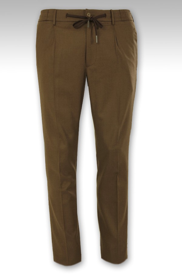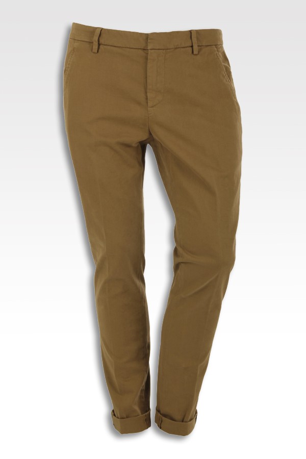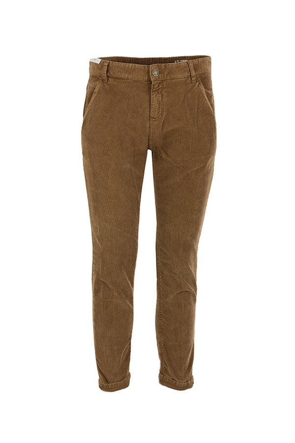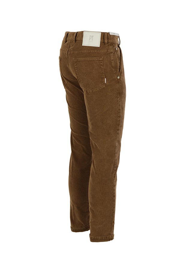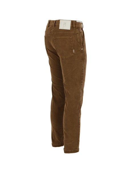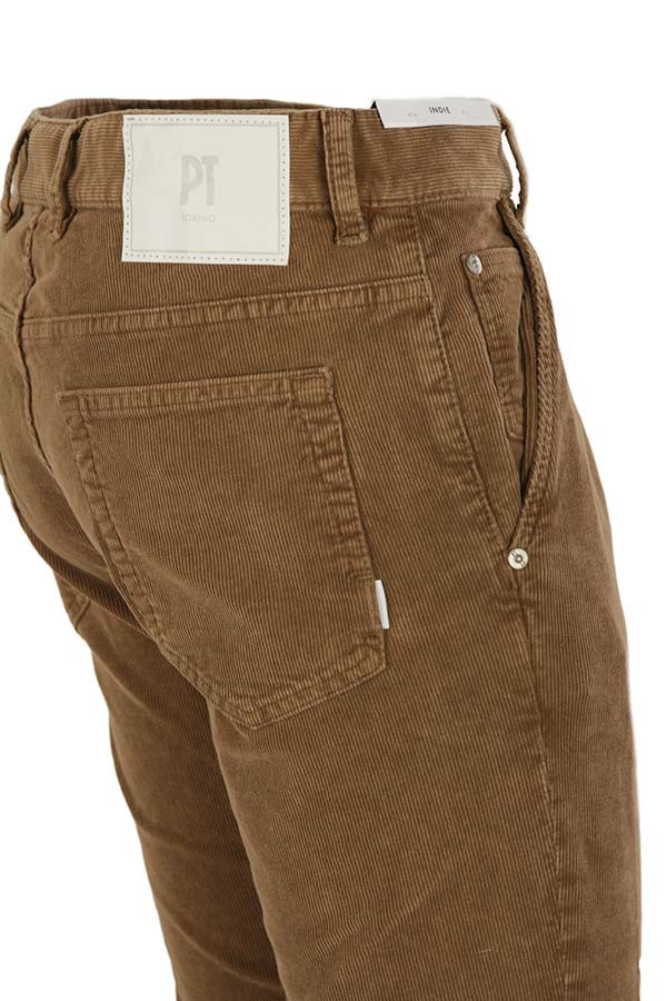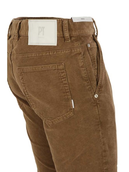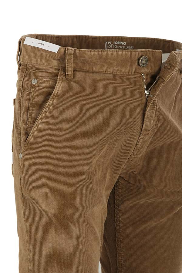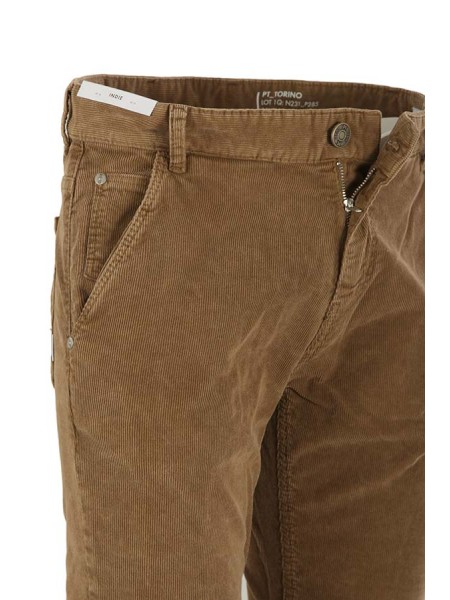 Jeans PT Art.ZT01Z00BASTT31 M145 realizzato in vellutino a coste strette colore cammello, modello inside 5 tasche slim fit, chiusura con zip.