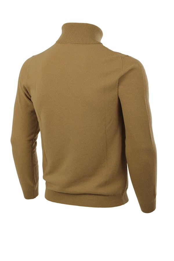 Maglia Art.320K7004 90 modello dolcevita realizzato in cachemire un filo colore cammello, vestibilità regolare per un look casual raffinato.