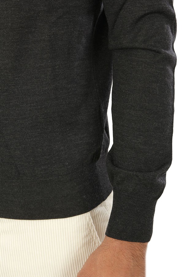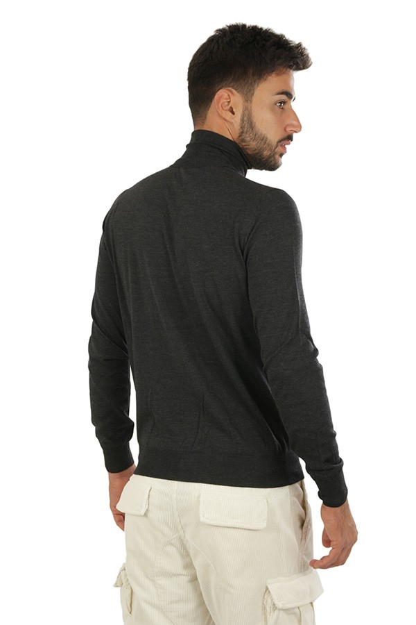 Maglia Hindustrie Art.DV1ML RM16R 980 modello dolcevita realizzato in lana colore antracite, slim fit. Composizione 100%wv. Il modello indossa taglia 48.