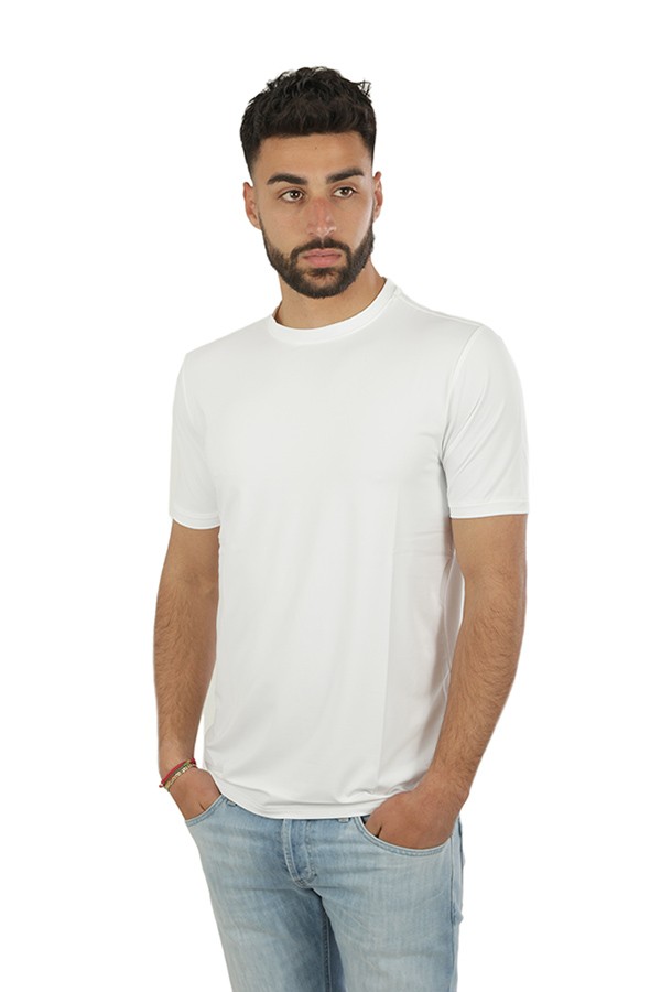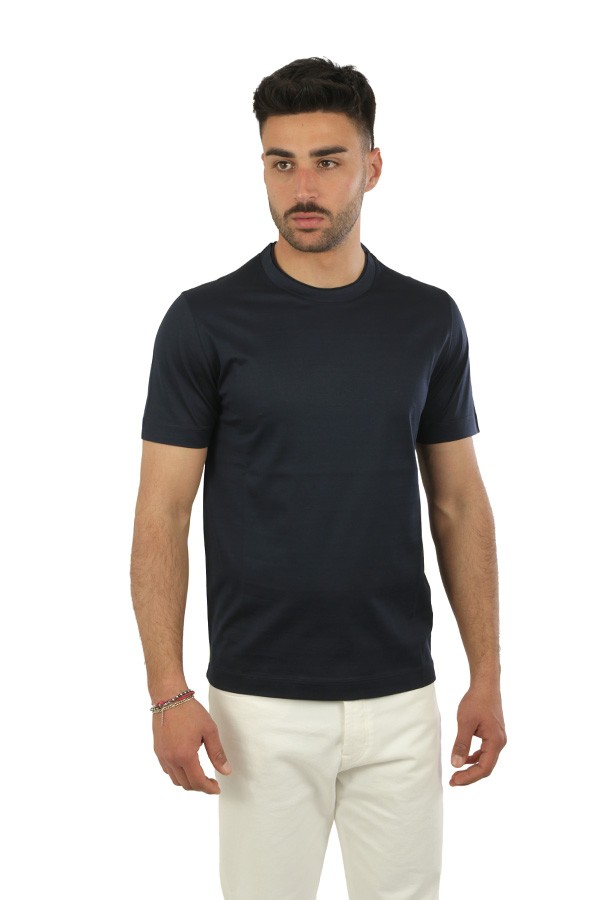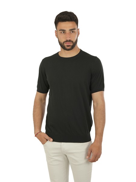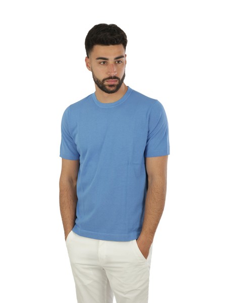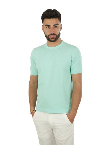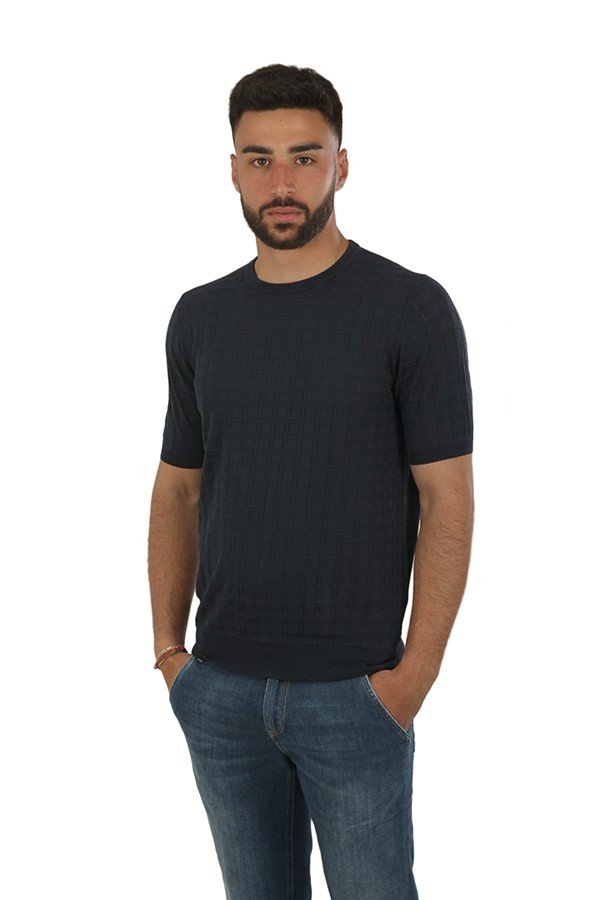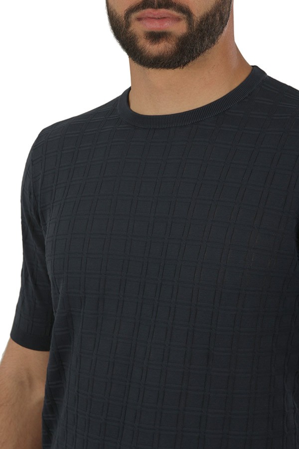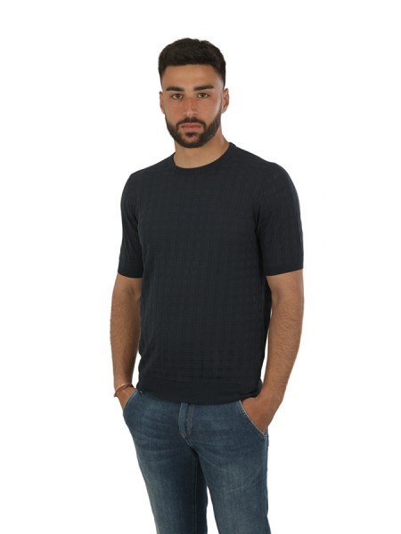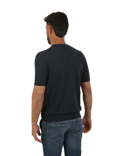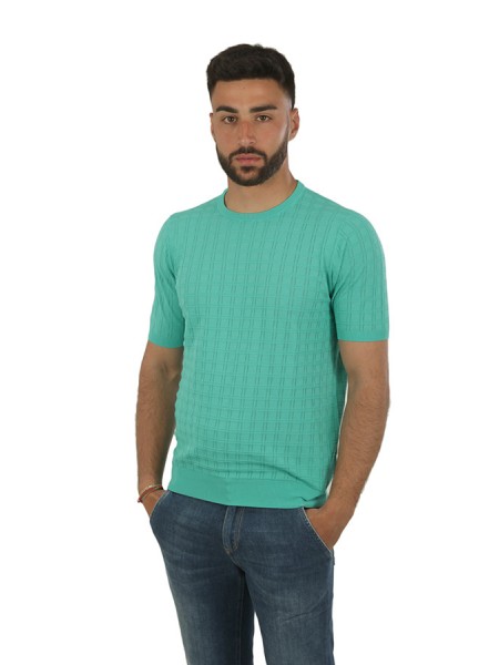 Girocollo in cotone, maniche corte, in tessuto operato.