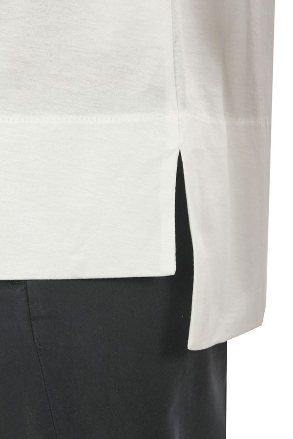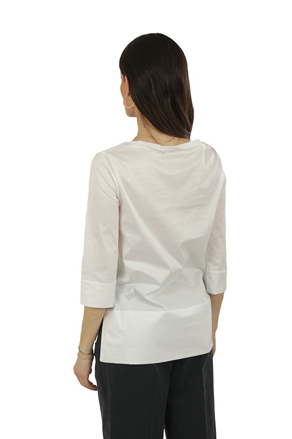 Girocollo, realizzato in finissimo cotone, maniche trequarti.