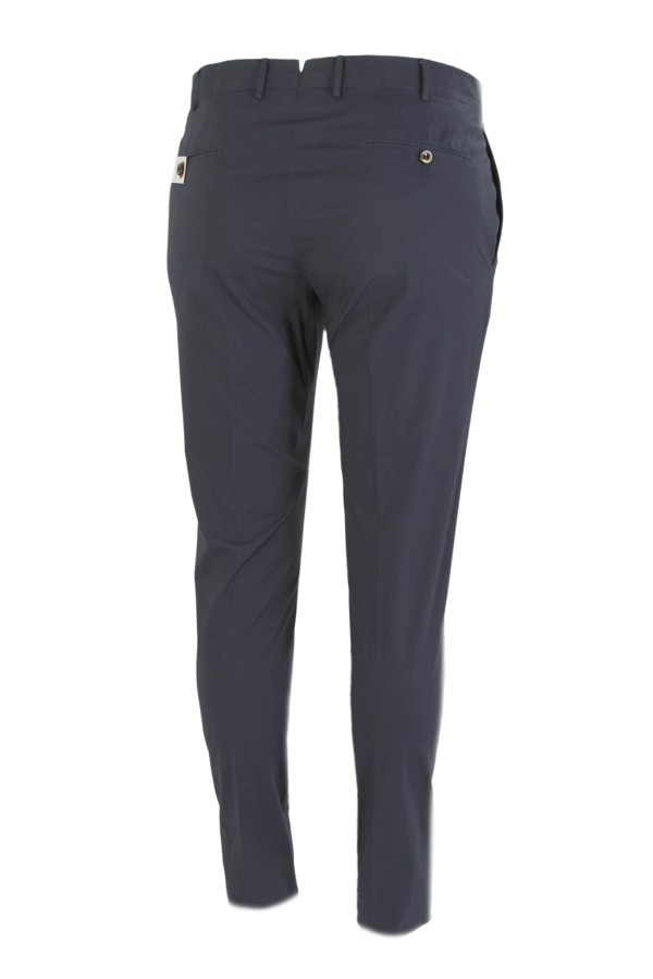 Pantalone PT Art.DL01Z00CL1 BP23 0360 realizzato in cotone popeline light colore blu, modello superslim con tasche a filo. Composizione 8%co 2%ea. Il modello indossa taglia 48.