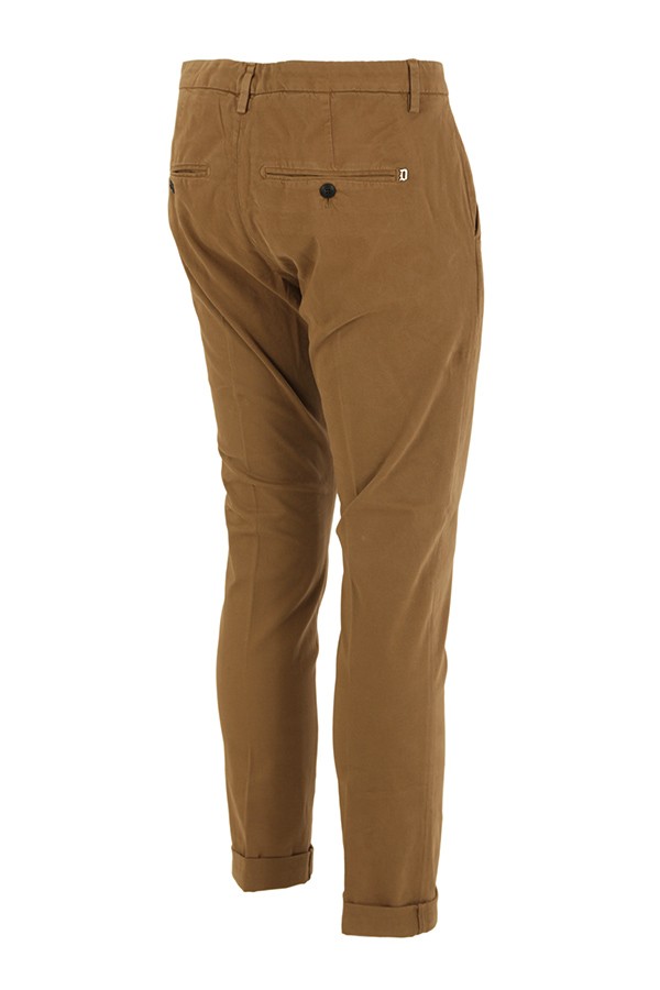 Pantalone DONDUP ART. UP235 GSE043U PTD 051 Color beige, modello gaubert realizzato in cotone stretch, chiusura frontale nascosta con bottone e zip, vita con passanti, tasche laterali stile America, tasche posteriori a doppio filetto, risvolto sul fondo, logo metallico posteriore.