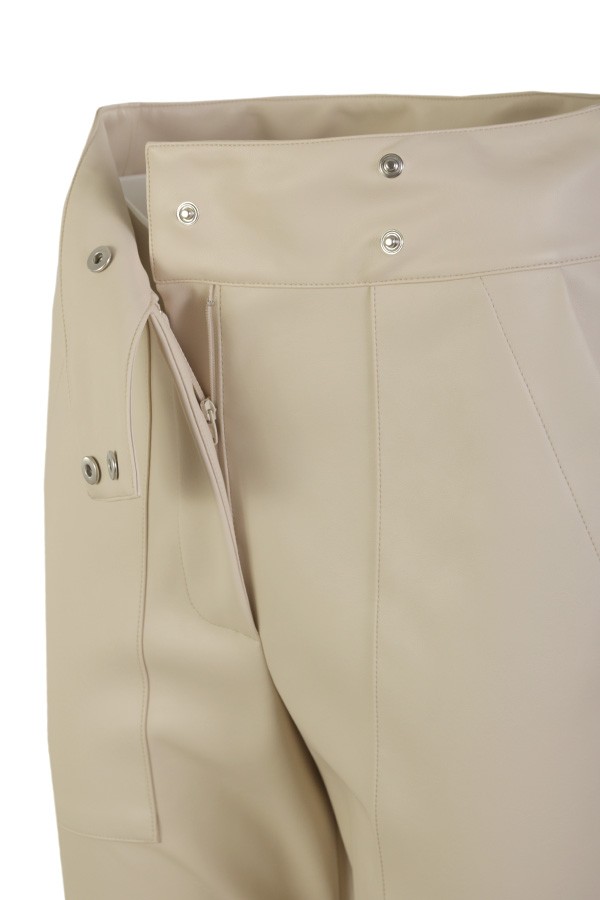 Biagio, in simil pelle, largo, con tasche fatique frontali e tasche a filetto posteriori. Chiusura con bottoni a clips.