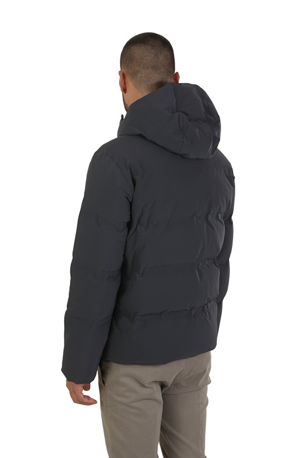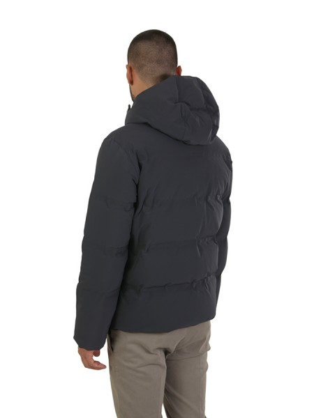 Realizzato in tessuto opaco, stretch. Dalla vestibilità regolare. Con collo alto e cappuccio. Tasche con zip, e cuciture termonastrate. Fondo con coulisse laterali.