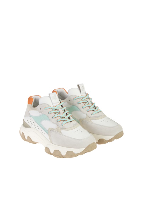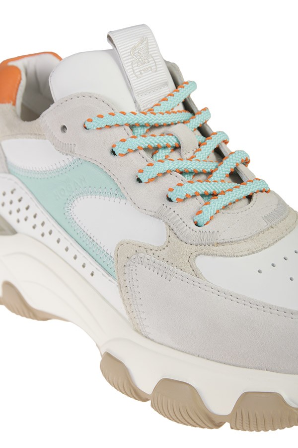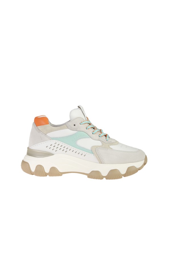 Modello Hyperactive, con suola chunky extralight, tomaia in pelle scamosciata e inserti in pelle liscia. Con logo laterale e impunture. Fussbett in memory foam. Altezza 6.2cm. Con lacci aggiuntivi.