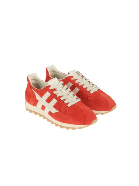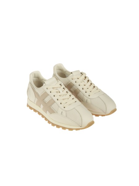 Modello H-Stripes, con tomaia in nappa e H laterale in pelle liscia, suola EVA extralight con righe verticali,  e fussbett in memory foam. Altezza 5.8 cm. Lacci aggiuntivi inclusi.