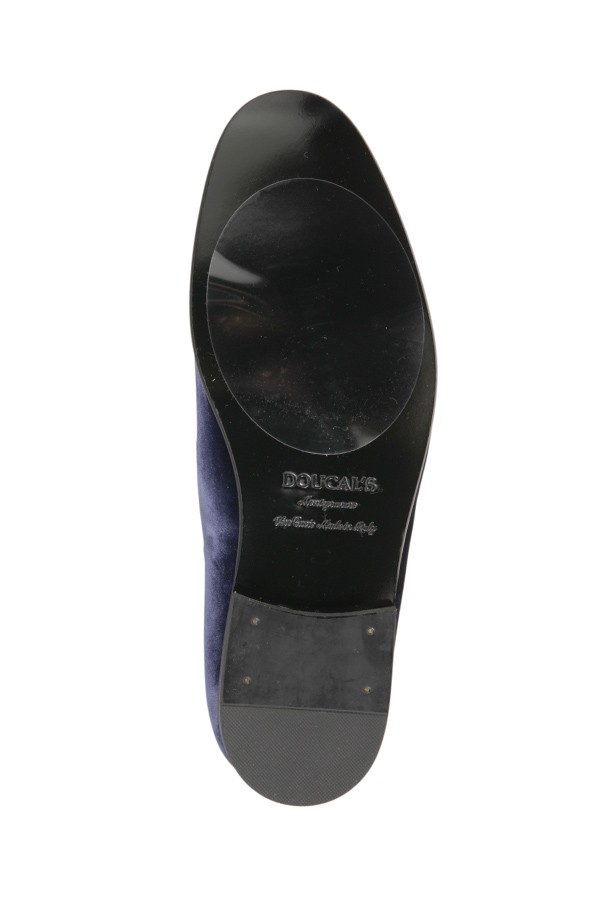 Modello in velluto Blu, con linea arrotondata, senza cuciture. Calzata comoda.