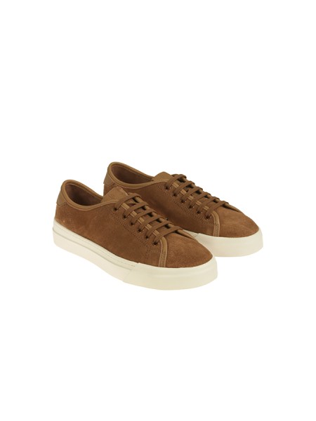 Tomaia in suede, con vaschetta cucita, decoro in iconico filo arancione. Pianta larga e punta tonda. Fondo in gomma.