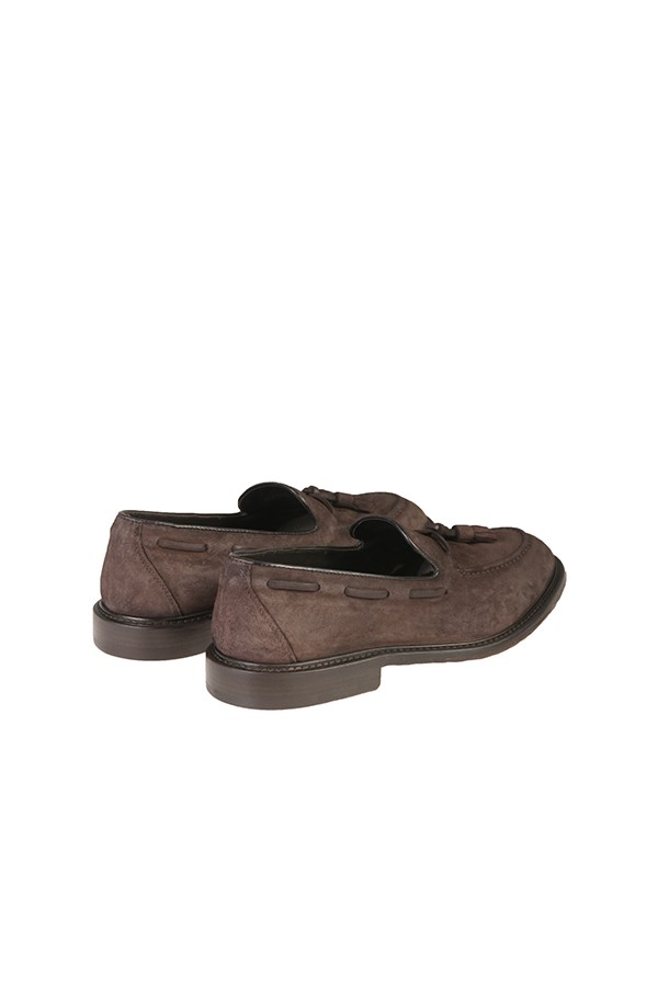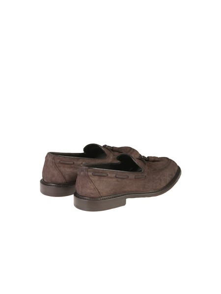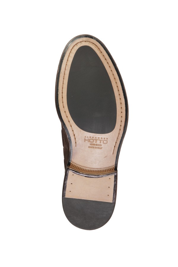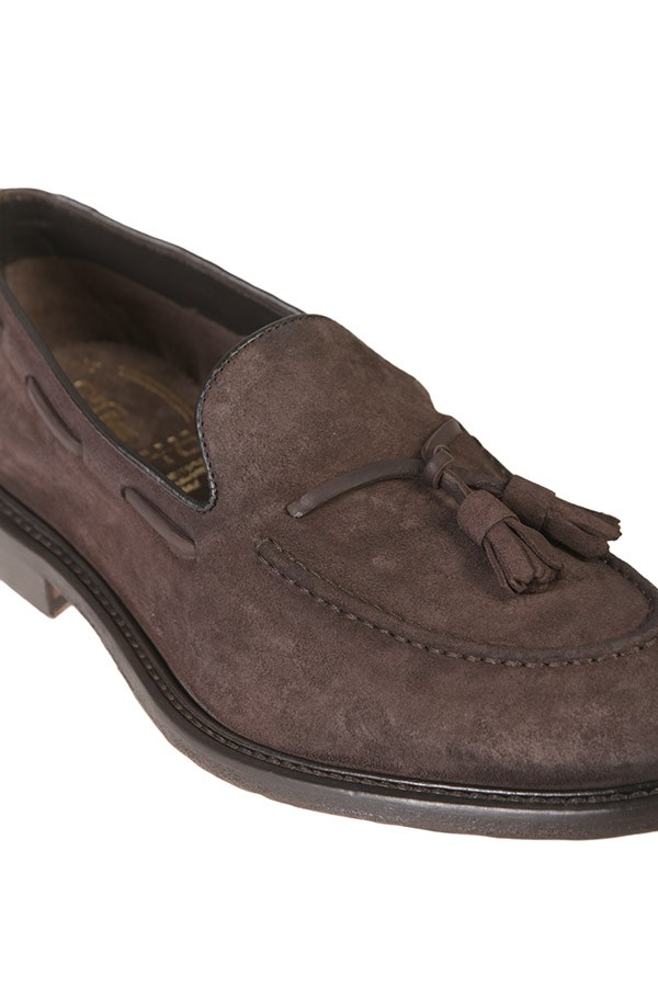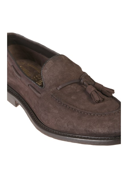 Mocassino in morbida suede spazzolata a mano con fondo in cuoio, una fusione perfetta di eleganza ed informalità.
