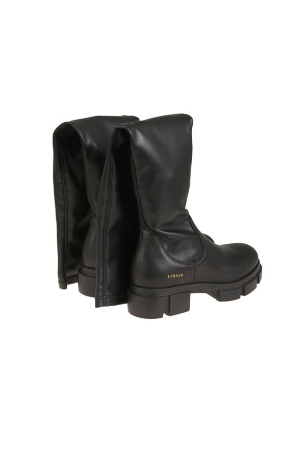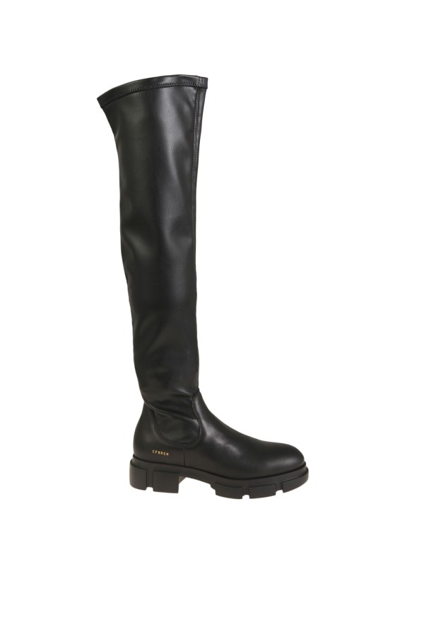 Stivali al ginocchio, realizzati in morbida pelle e materiale elasticizzato vegano. Punta tonda, suola in gomma.