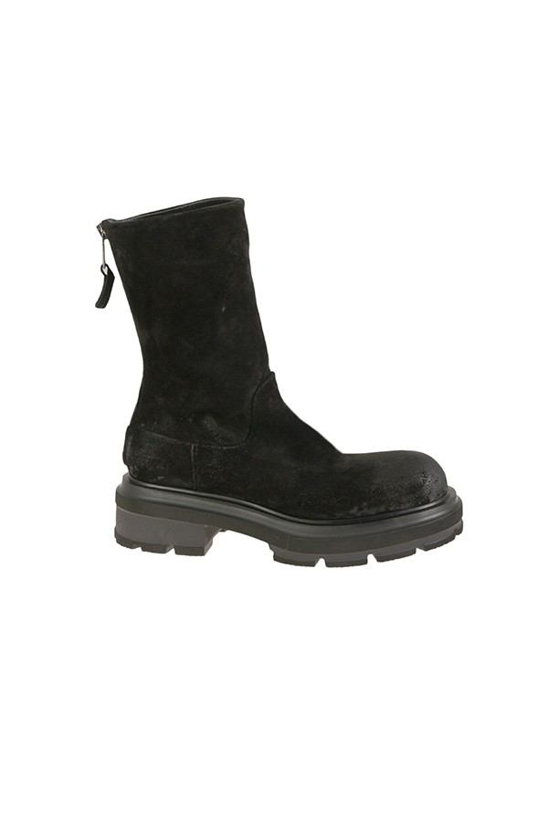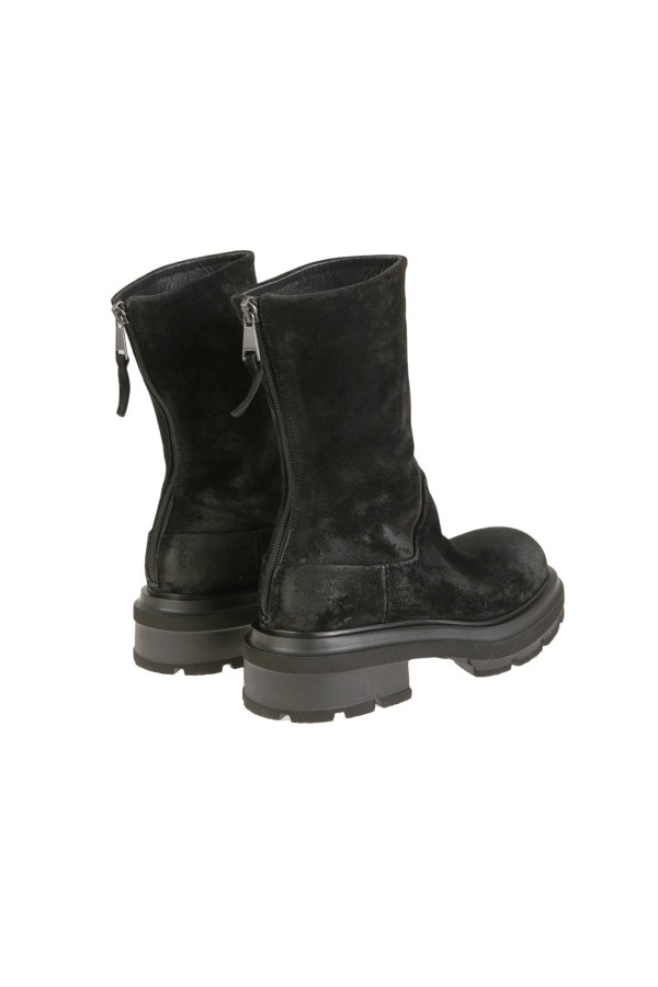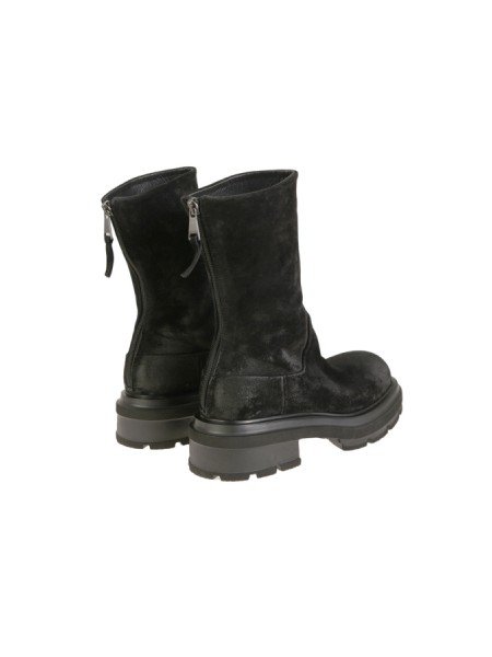 Realizzato in morbido camoscio, con suola in gomma. Chiusura posteriore con zip. Altezza 30mm, tacco 50mm.