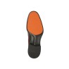 Realizzata in pelle, con classica mascherina e elastici nascosti. Vaschetta cucita. Punta arrotondata.
