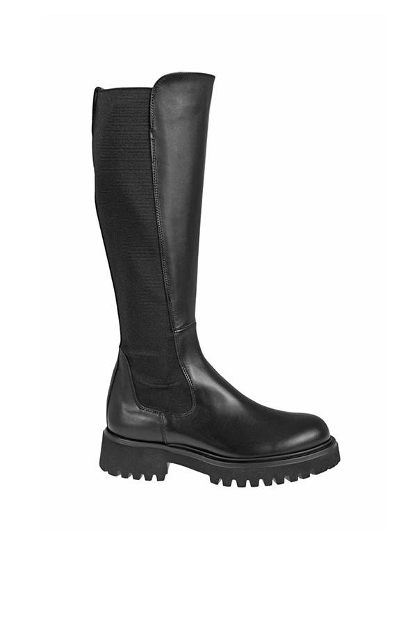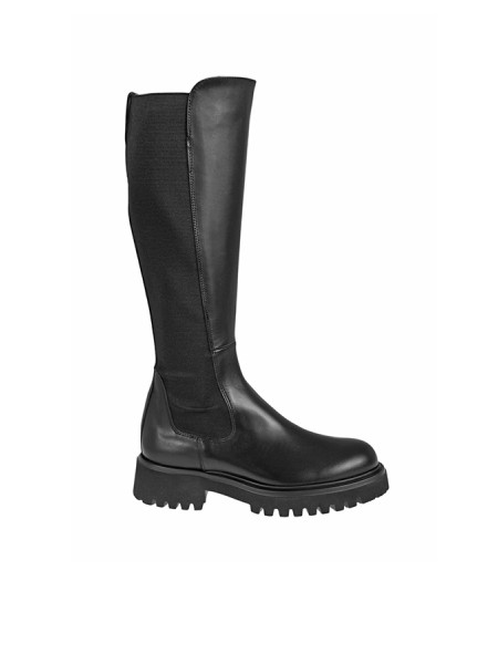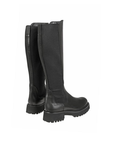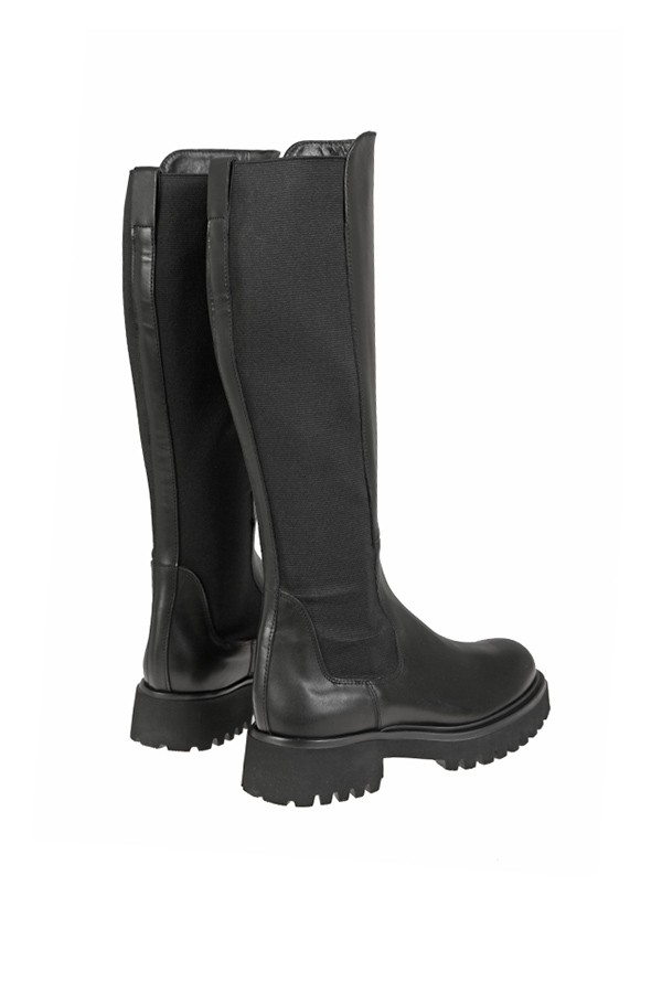 Realizzato in pelle, con gambale alto e elastici laterali. Suola carro armato in gomma. Tacco 45mm.