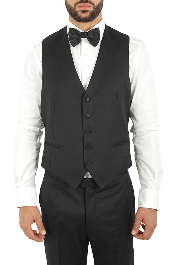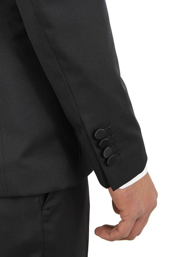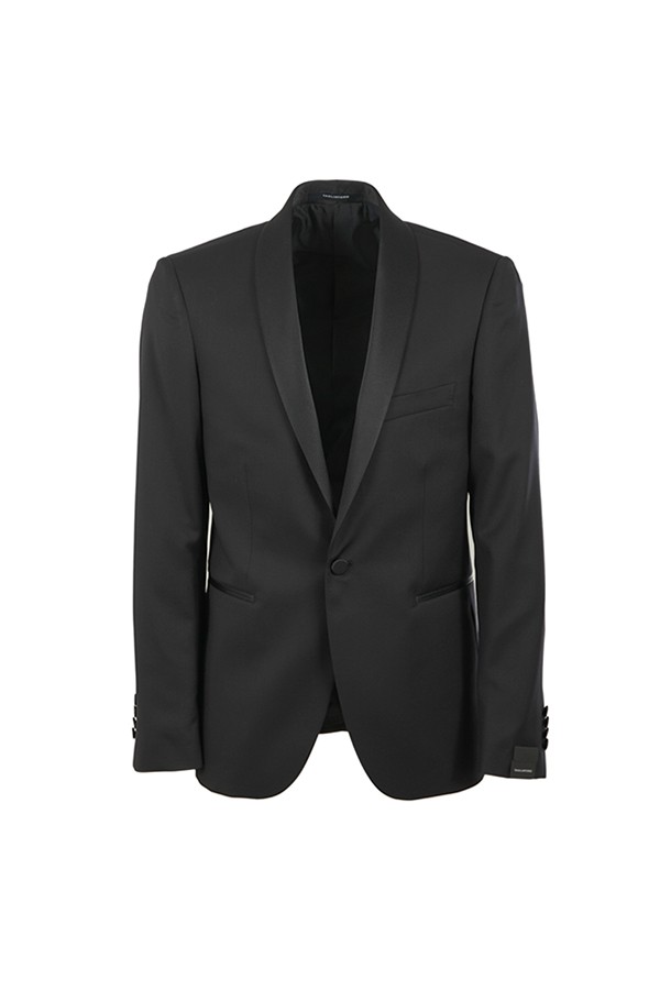 Giacca monopetto con revers e bottoni in tessuto lucido. Taschino sul petto.