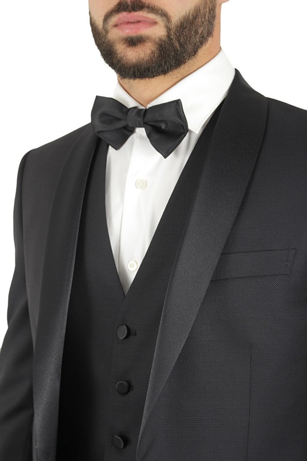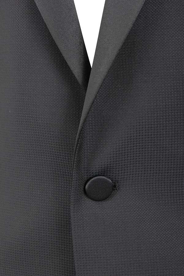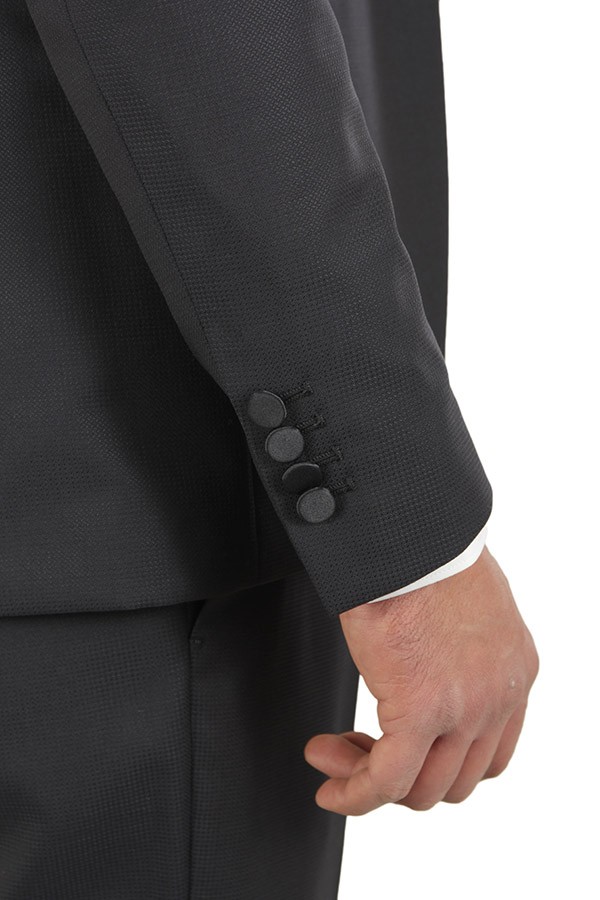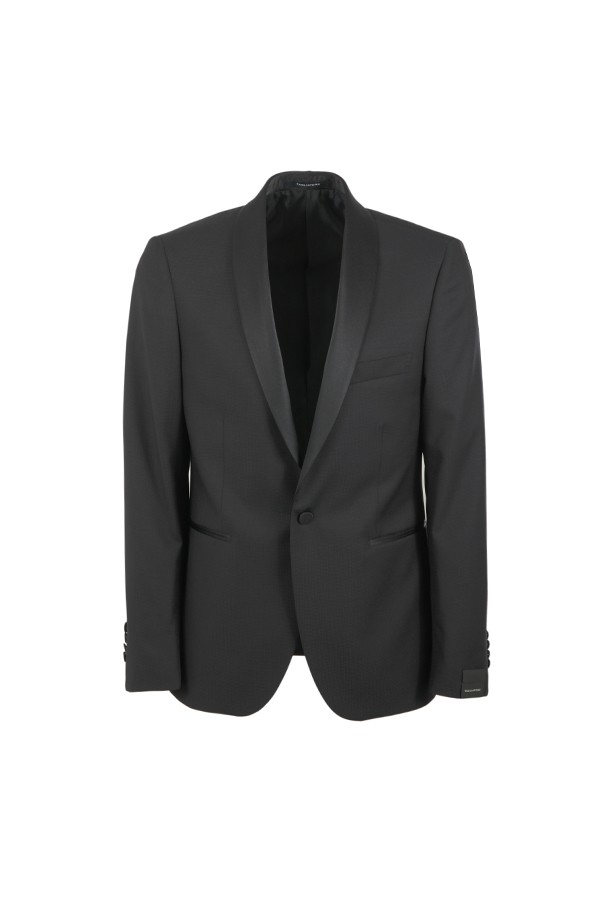 Monopetto dal tessuto micro operato. Con revers lucidi,taschino sul petto.