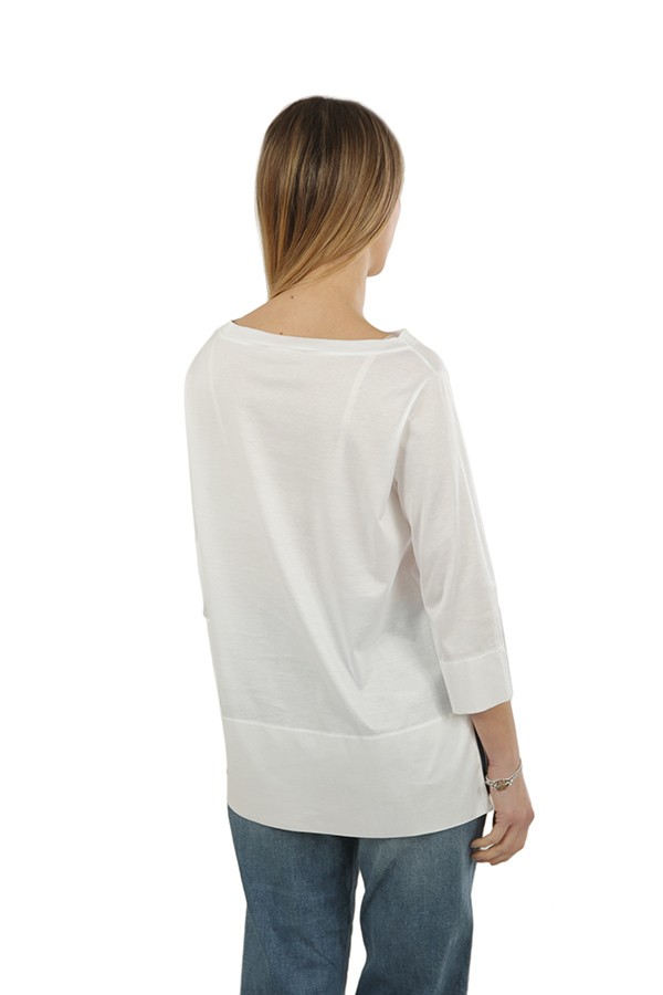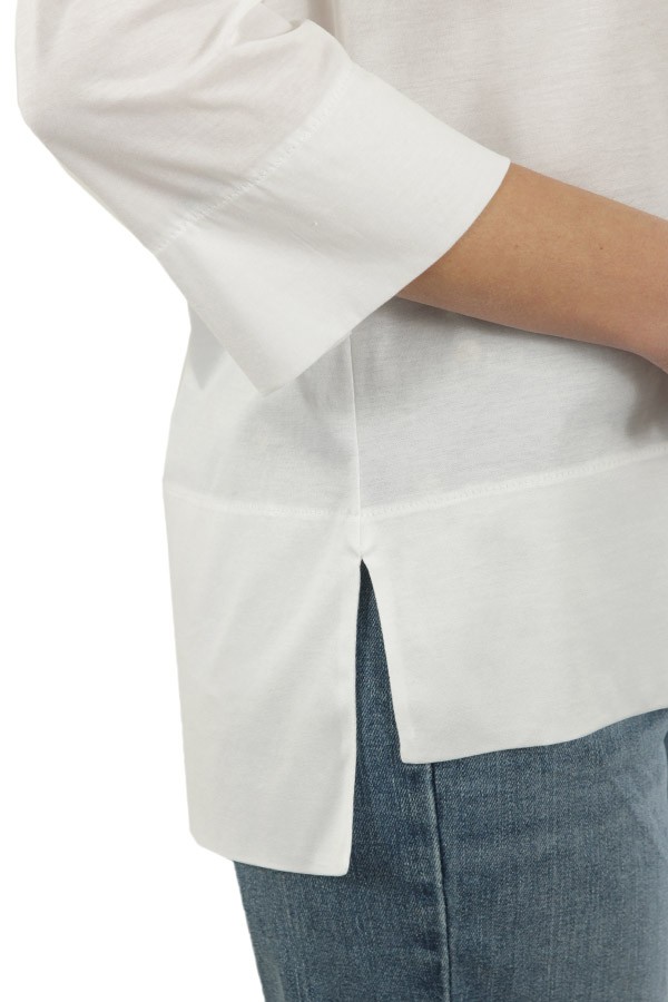 Realizzata in cotone, con scollo barca e manica trequarti. Spacchi laterali.