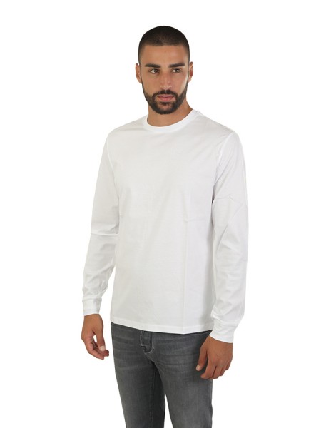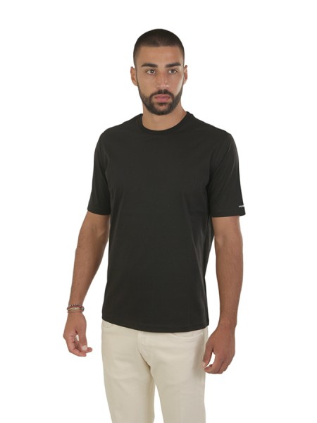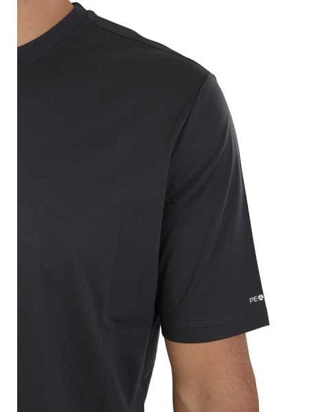Realizzata in cotone, girocollo. Dall'effetto filo di scozia. Logo sulla manica. Vestibilità slim.